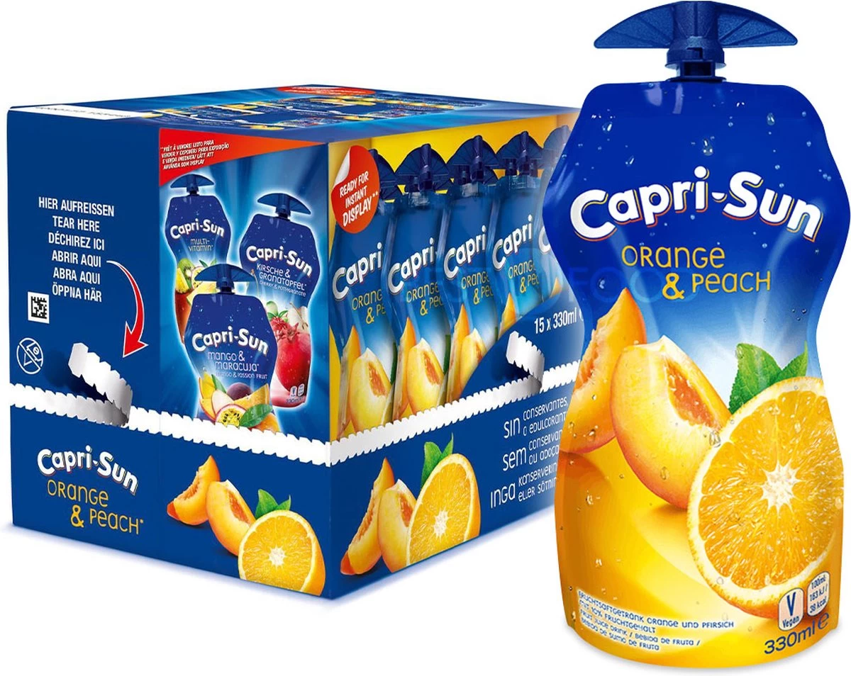 Wanneer zoetzure sinaasappel en fluweelzachte perzik elkaar ontmoeten, schijnt de zon uit de zak. slok voor slok. Het heet niet voor niets Capri Sun.