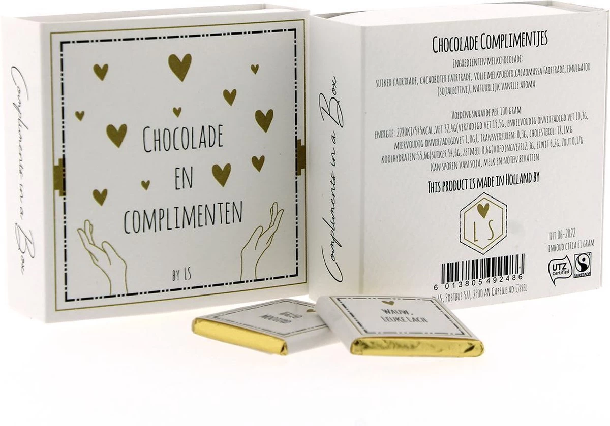 Doosje met chocolade complimenten, erg leuk om cadeau te doen!