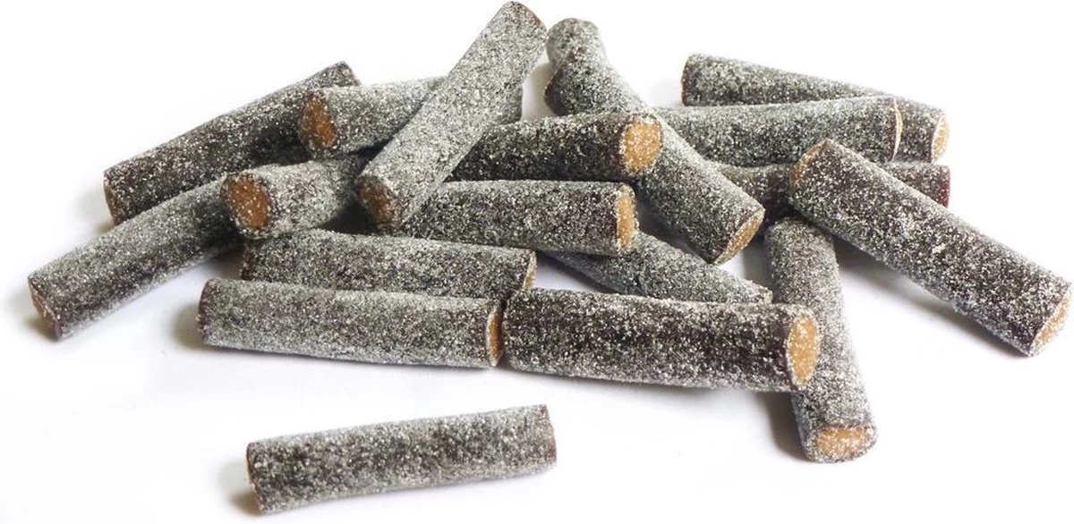 Zoute drop met gesuikerd laagje en heerlijk zachte salmiakvulling. Productinformatie:zonder kleurstofplm 3,5 cm lang x 0,8 cm breedgewicht gemiddeld 3 gram per stuk