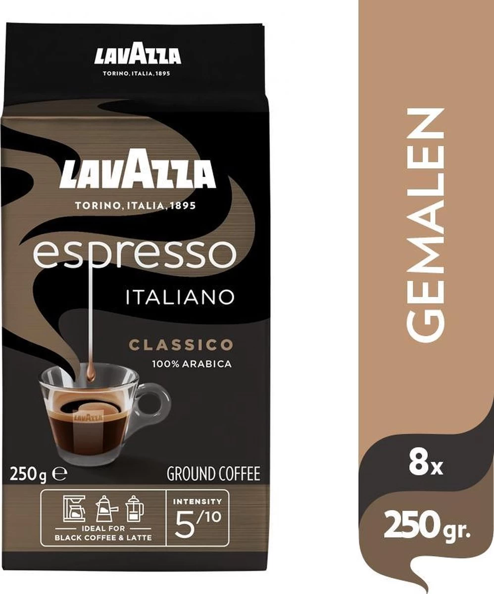 Lavazza Espresso Italiano Classico Gemalen / Filterkoffie – 8 X 250 Gram