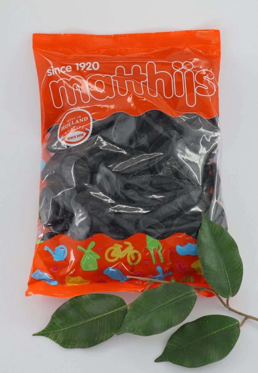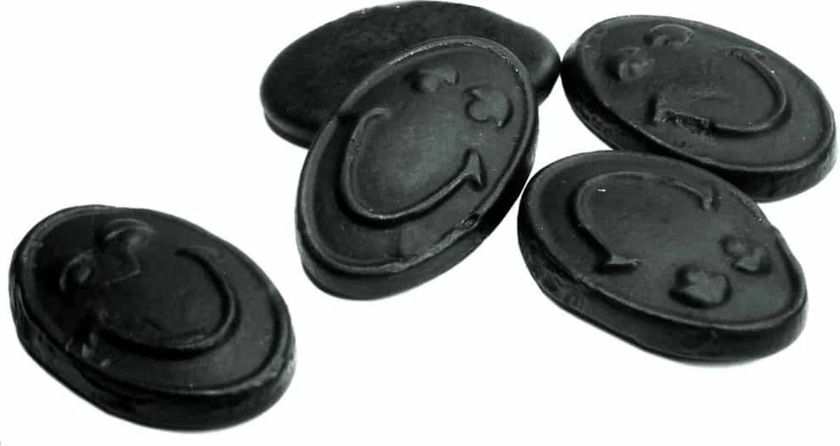 | Allergeneninformatie | suiker, glucosestroop, gemodificeerd (maïs)zetmeel, melasse, gelatine (varken), zoethoutextract, salmiakzout, kleurstof: E153, plantaardige olie, glansmiddel: carnaubawas |