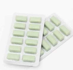 | Ingrediënten | Ingrediënten: Zoetstoffen (maltitolen, sorbitol, aspartaam, acesulfaam-K), gom, vulstof (calciumcarbonaat), aroma's, zoethoutextract, verdikkingsmiddel (arabische gom), emulgator (lecithinen), glansmiddel (carnaubawas), kleurstof (E150d). Bevat een bron van fenylalanine.Overmatig gebruik kan een laxerend effect hebben. |